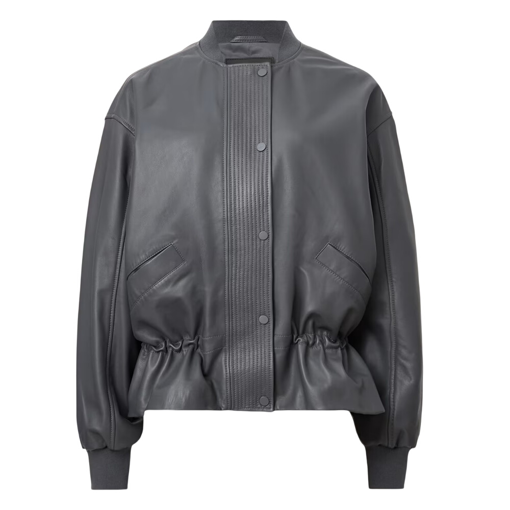 AllSaints Sofui Drawstring Leather Bomber Jacket