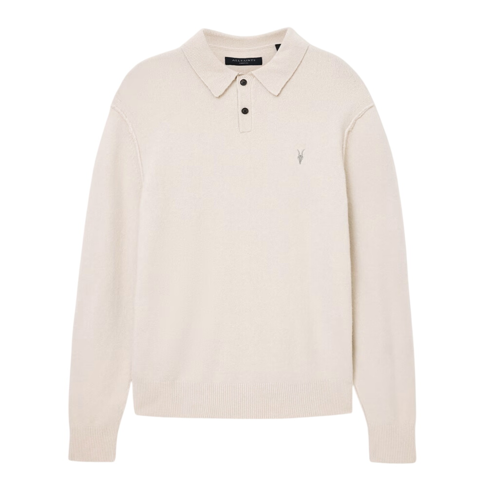 AllSaints Statten Long Sleeve Ramskull Cloudy White Polo Jumper