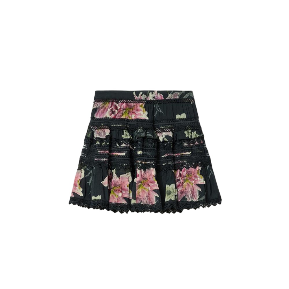 The Zora Skirt showcases layers of ruffles and gathers in printed micro modal fabric. Trimmed with delicate cotton lace and finished with an invisible side zip, this mini silhouette creates movement with every step. Browse more skirts.