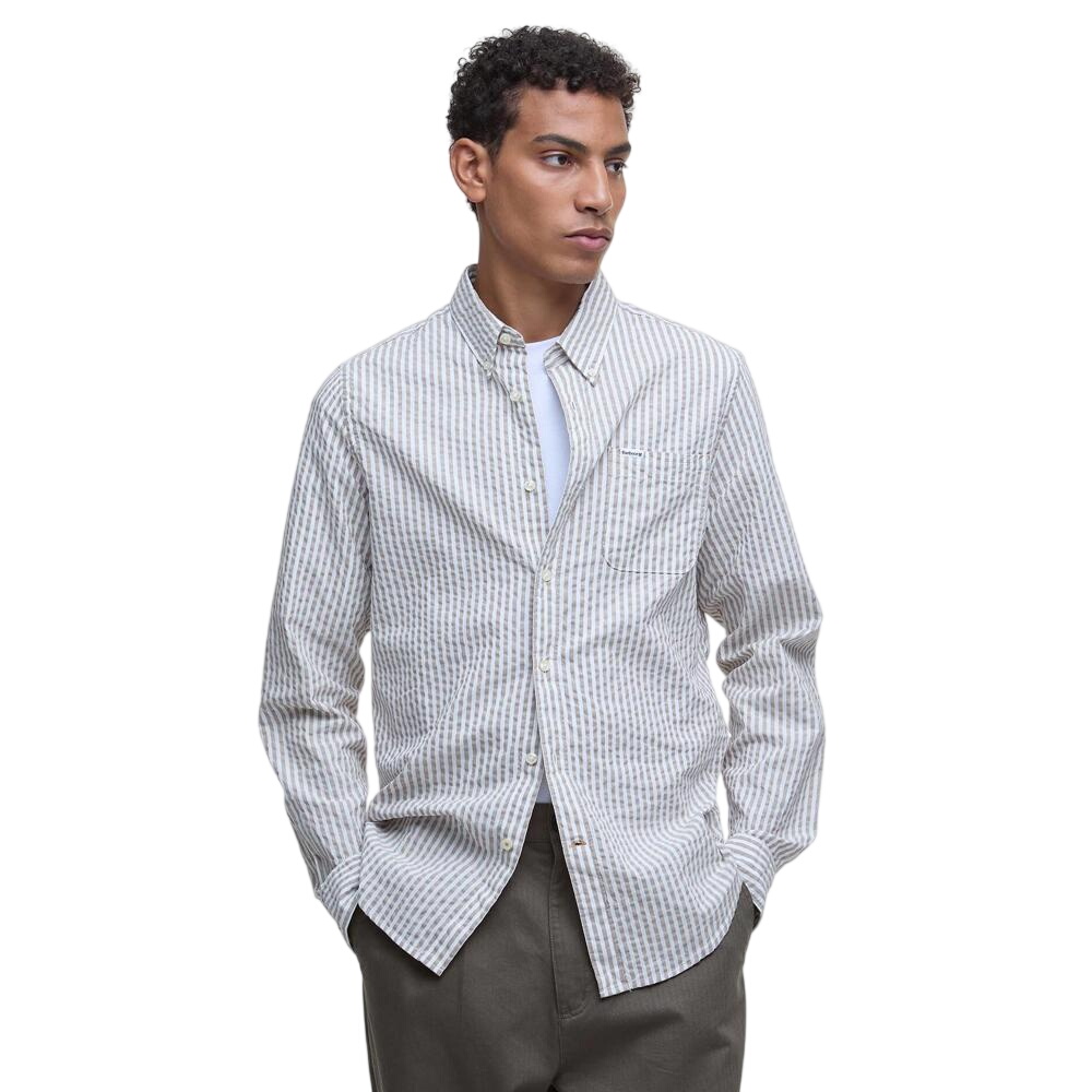Elevate your everyday shirt collection with a smart-casual feel with the Barbour Cresswell Seersucker Tailored Long Sleeved Shirt. Crafted from seersucker cotton and detailed with a vertical stripe for a contemporary look and feel, this style pairs perfectly with jeans and trainers for a relaxed yet sophisticated look.
