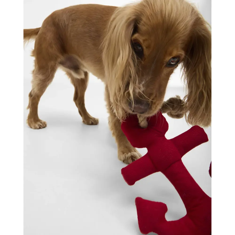 The Barbour Dog Anchor Toy is a playful pet accessory crafted in red cord fabric with a natural rope detail. Designed with a built-in squeaker, it offers interactive fun for dogs while adding a nautical-inspired touch, combining Barbour’s signature heritage style with durable, engaging design for everyday play.