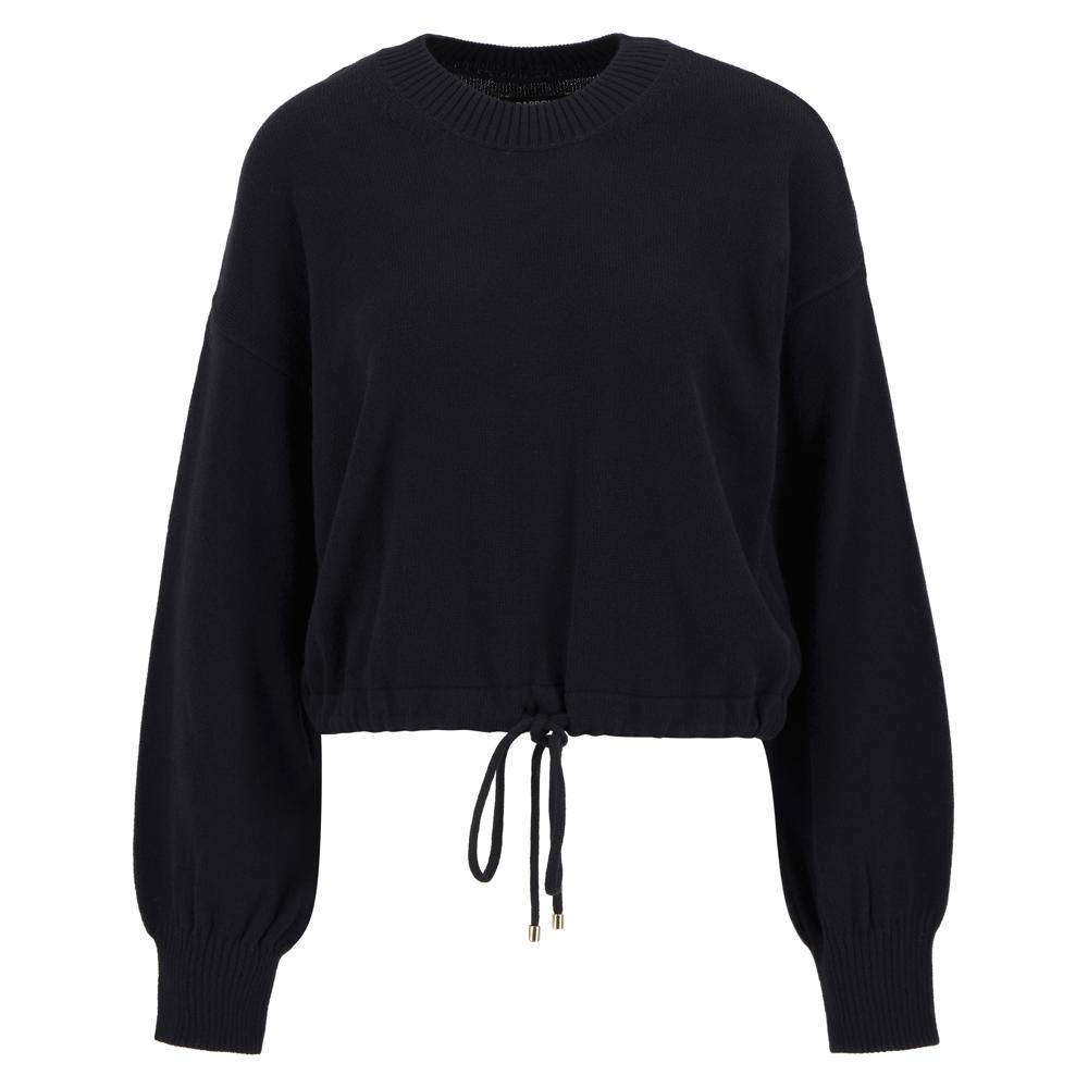 The B.Intl Ciara Knitted Crew Neck Jumper is a stylish blend of comfort and versatility. This crew neck cropped knit features a drawcord hem with gathering, dropped shoulders, and ribbed trims for a relaxed, modern fit. Made from 100% cotton and finished with a silicone ID badge at the back neck, it’s perfect for effortless everyday style.