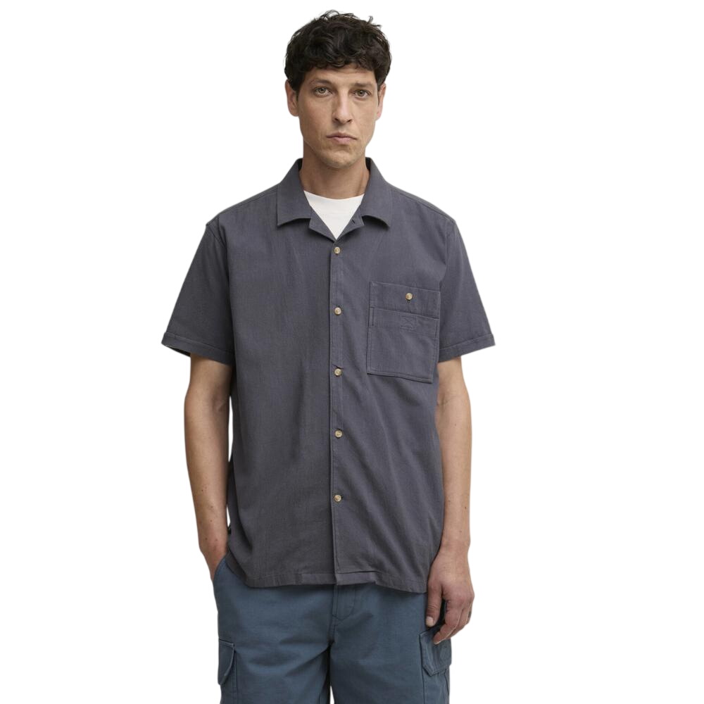 Experience effortless summer style with the Barbour Riddell Crepe Relaxed Short-Sleeved Shirt. Crafted from a lightweight crinkle crepe fabric, this short-sleeved shirt offers a breezy, relaxed fit perfect for warm days. It features a modern revere collar and a utility-inspired chest pocket for a functional touch. A subtle Barbour branded flag label on the side seam adds a signature finish to this versatile piece.