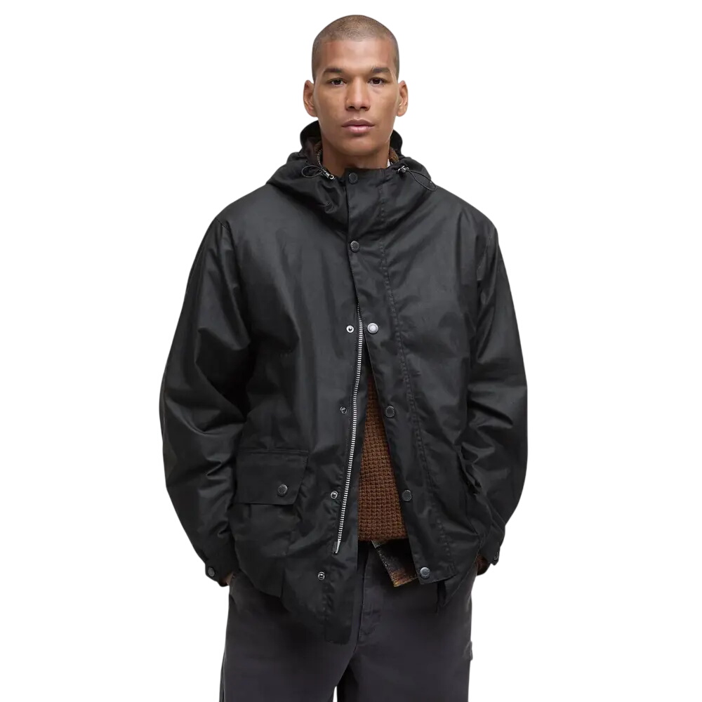 The Barbour Tide Waxed Jacket blends practical utility with refined details. Made from 100% waxed cotton, it features an overdyed tartan back yoke and hood lining, an adjustable peaked hood, and versatile patch pockets with handwarmer compartments. Designed for functional style, with a relaxed fit, pair it with bold knitwear, a wooly hat, and cargos to tackle any outdoor adventure with ease.