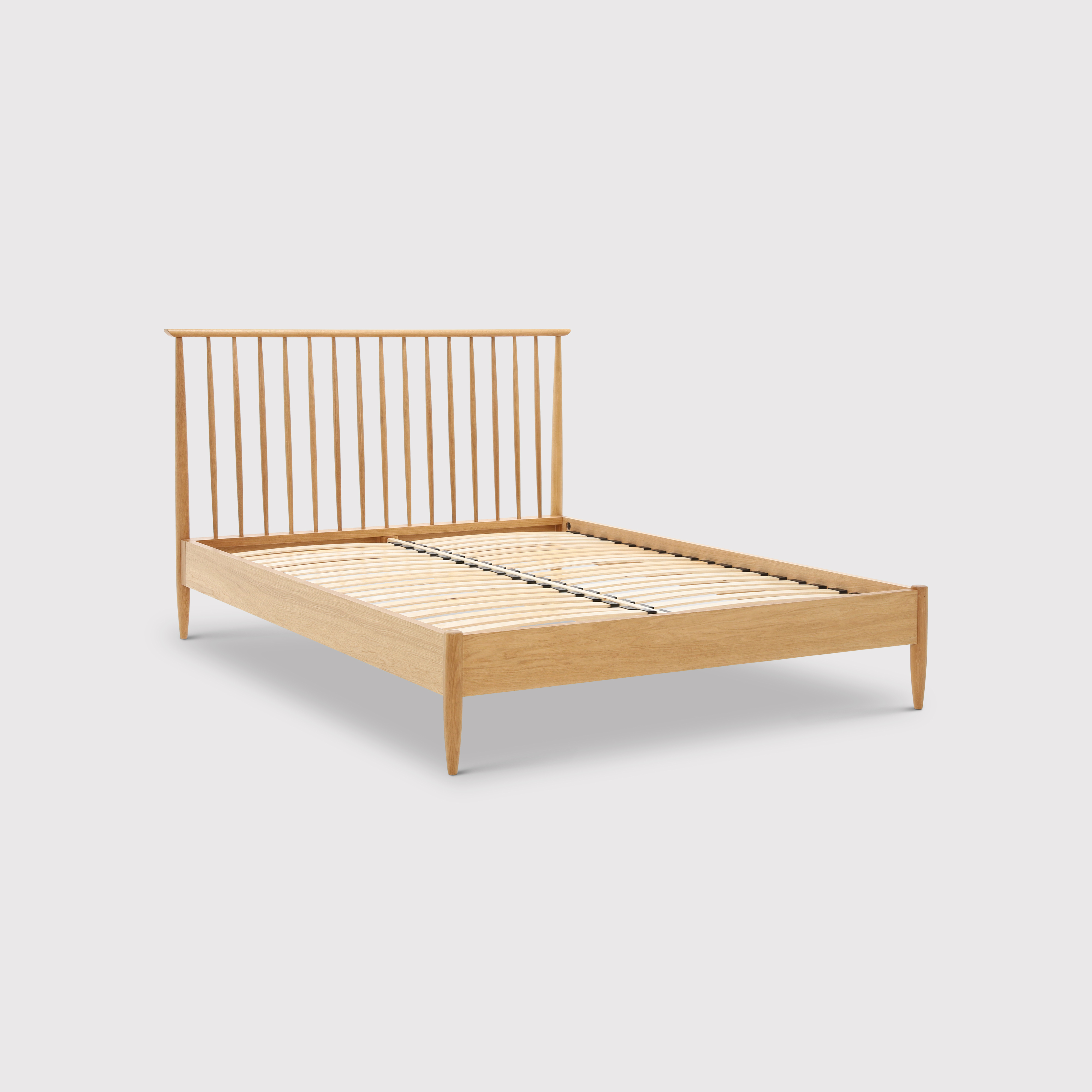 Teramo Bedroom Oak Double Bed Frame with Spindle Headboard, In Clear Matt Finish