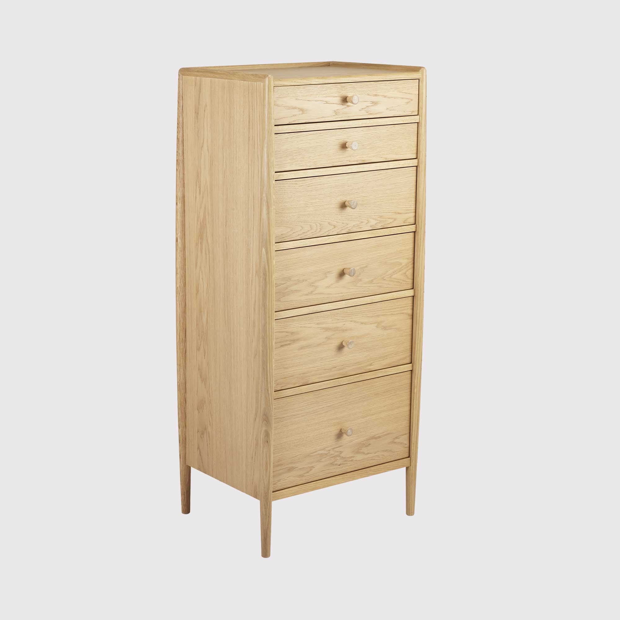 Winslow Oak 6 Drawer Tall Chest, In DM Natural Finish