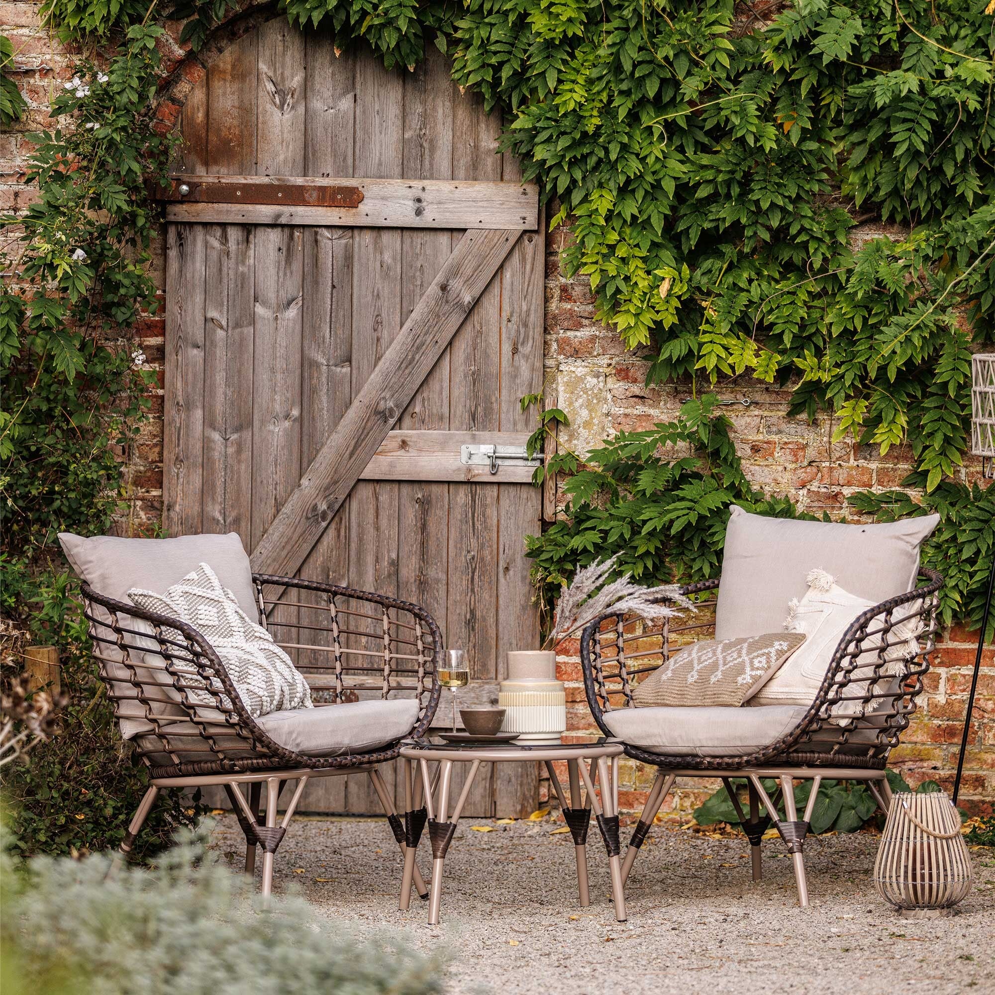 Bergamo Brown Wicker Garden Bistro Set, Seats 2