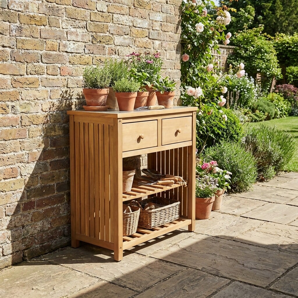 Calabria Teak Wood Garden Console Table, Light Teak and Stone Grey