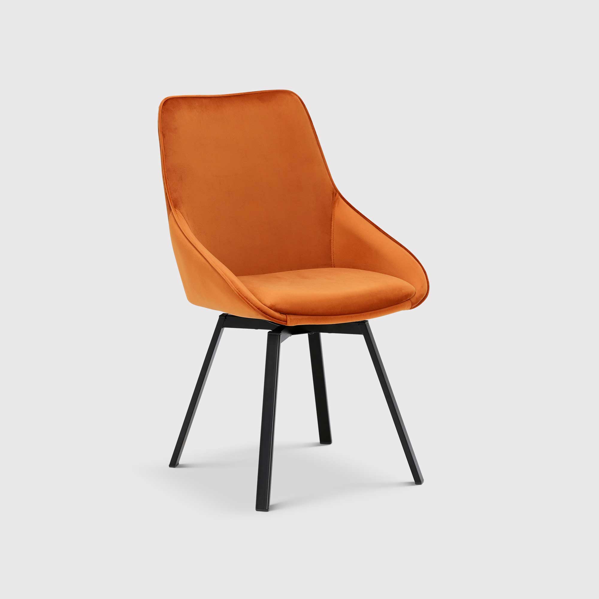 Beckton Orange Velvet Swivel Dining Chair, Orange Finish and Metal Legs