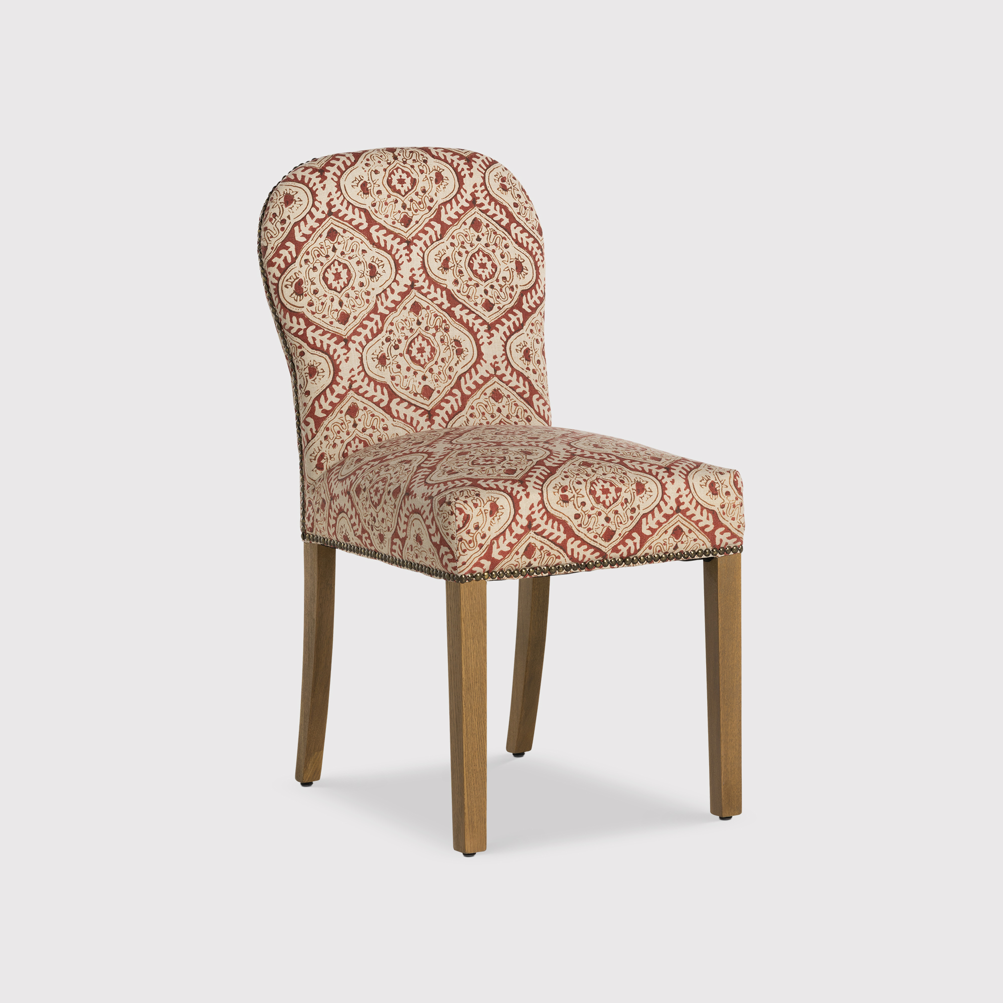 Gable x Linwood Patterned Fabric Dining Chair with Solid Wood Legs, In Linwood Kala Chestnut Light Foot With Studs