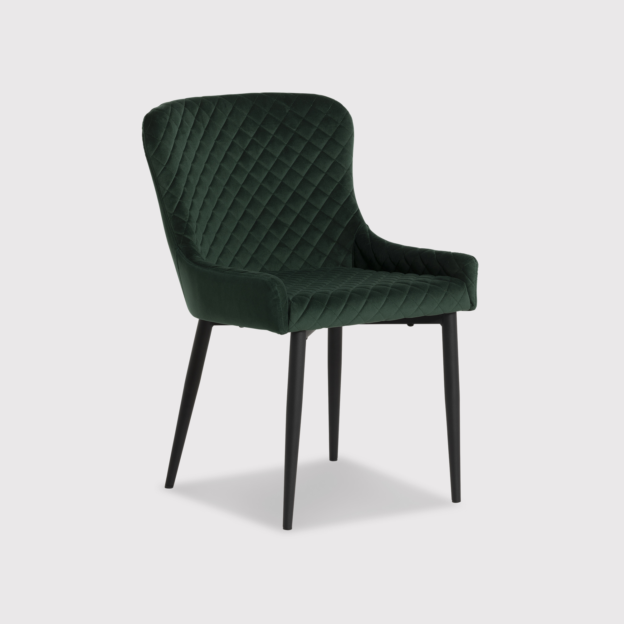 Rivington Green Velvet Quilted Dining Chair, Green Velvet and Black Legs