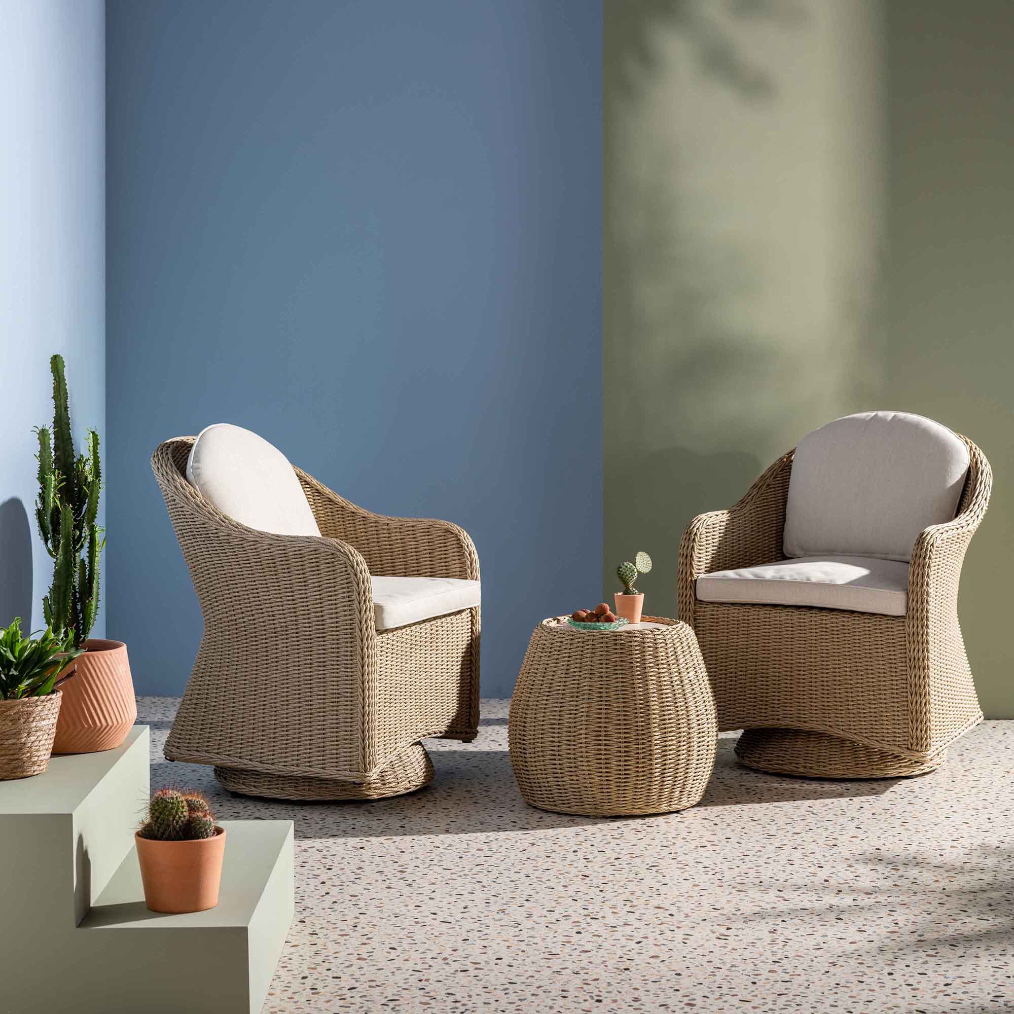 Garda 2 Seater Wicker Garden Swivel Bistro Set