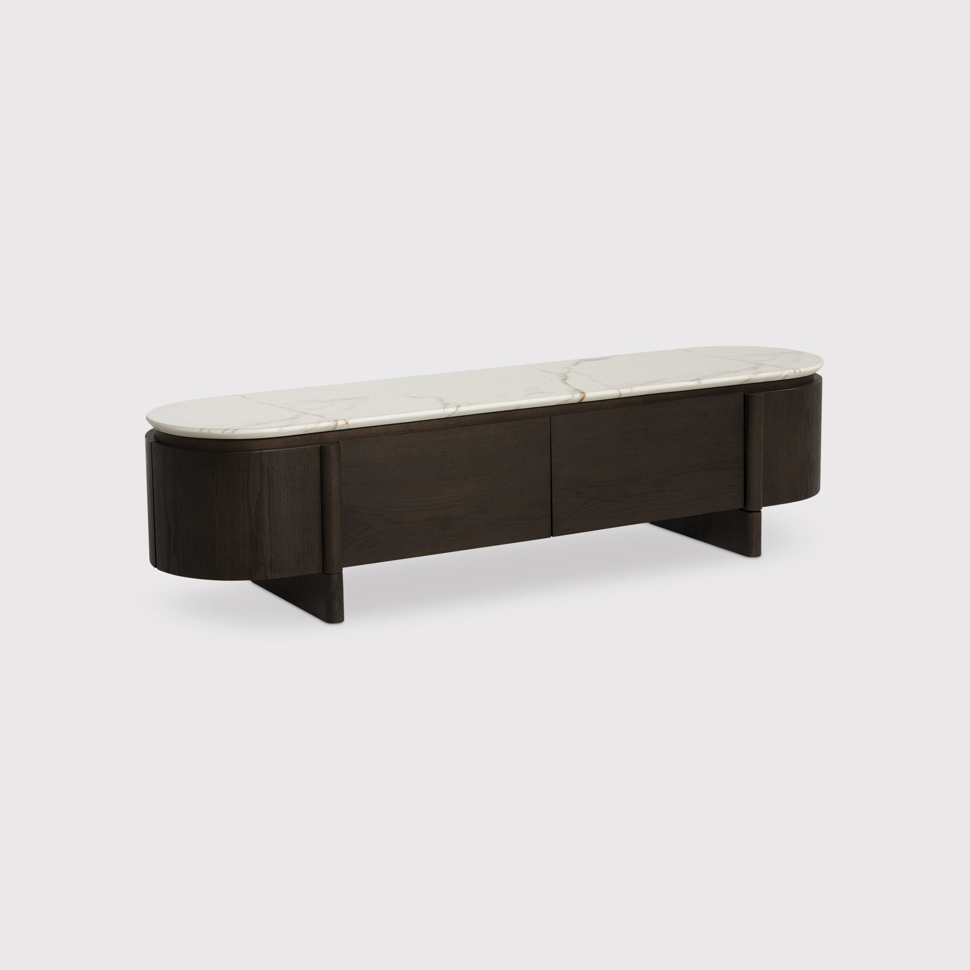 Infuse your living room with modern elegance through this sleek TV unit. Crafted with a durable ceramic marble-effect top, it perfectly complements the rich, dark engineered wood, creating a stunning piece that exudes sophistication. The elegantly curved sides contribute to its refined, contemporary silhouette, making it a visual masterpiece. This TV unit is designed to balance style and functionality, offering generous surface space for your television and accessories while elevating your room with a luxurious, artistic ambiance. Ideal for those who appreciate both impeccable design and practicality.