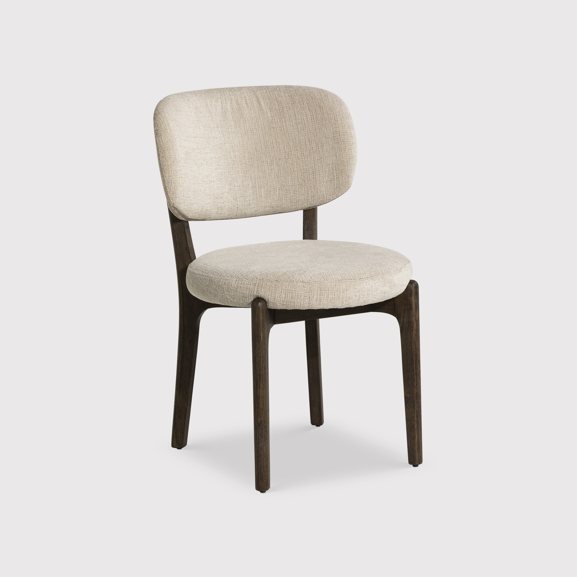 Experience the perfect fusion of comfort and elegance with the Nord Dining Chair, a masterpiece of design featuring a gracefully curved wooden frame and a plush upholstered seat. Meticulously crafted from solid wood, this chair boasts a rich dark finish that not only ensures a sturdy base but also exudes timeless charm. The seat is adorned with a soft, textured fabric in a versatile neutral tone, effortlessly enhancing any dining setting, whether modern or classic. Ideal for both lingering dinners and everyday use, the Nord Dining Chair embodies refined design, enduring comfort, and exceptional craftsmanship.