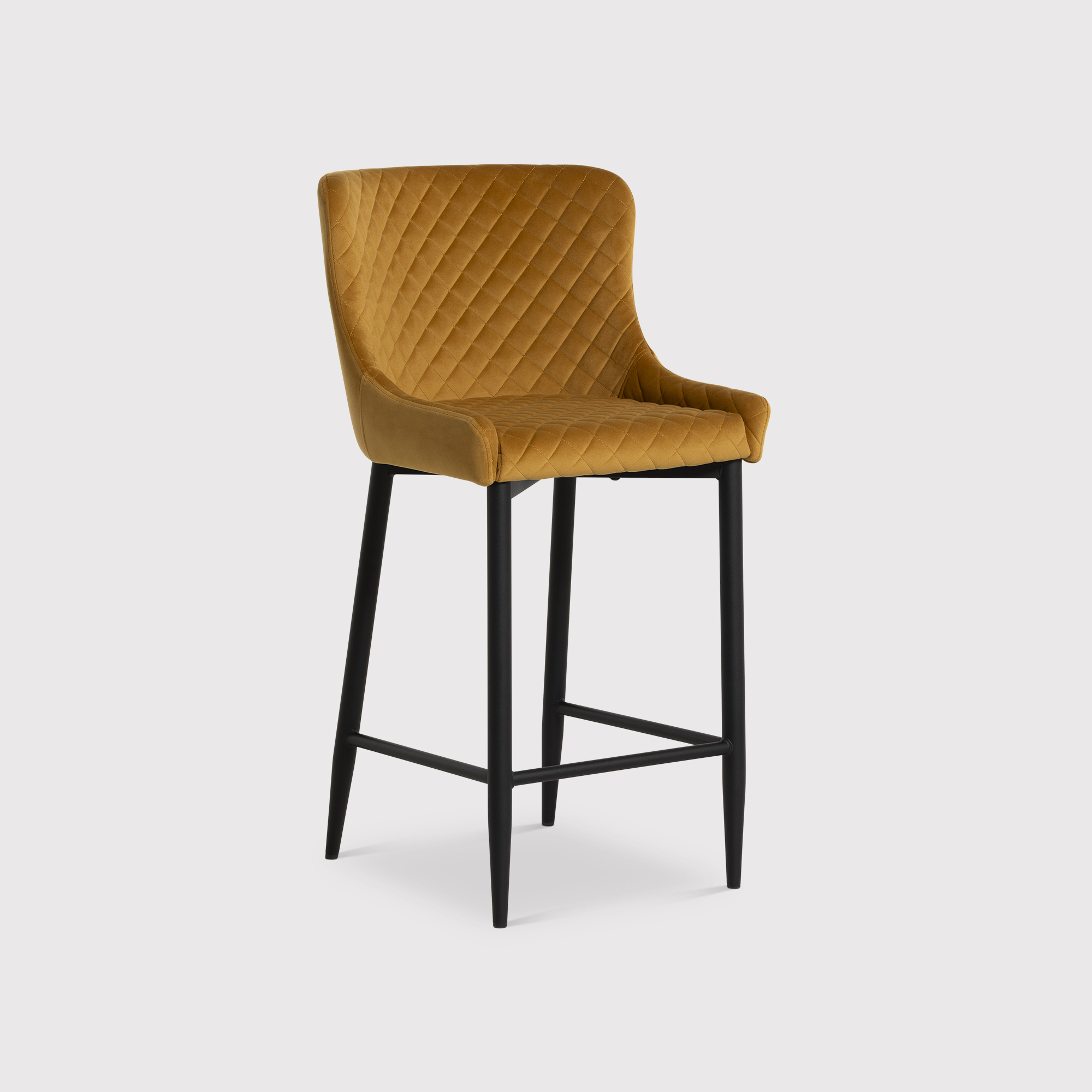 Rivington Golden Velvet Quilted Counter Stool, Mustard Velvet and Black Legs