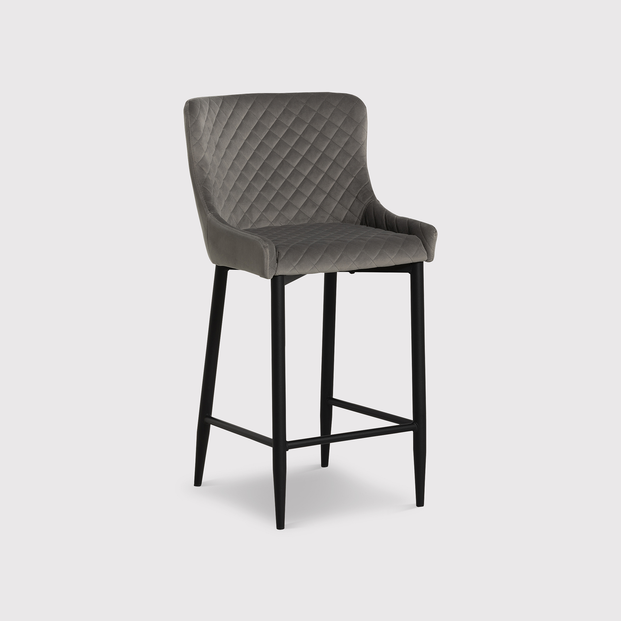 Rivington Grey Velvet Quilted Counter Stool, Grey Velvet Fabric and Black Legs