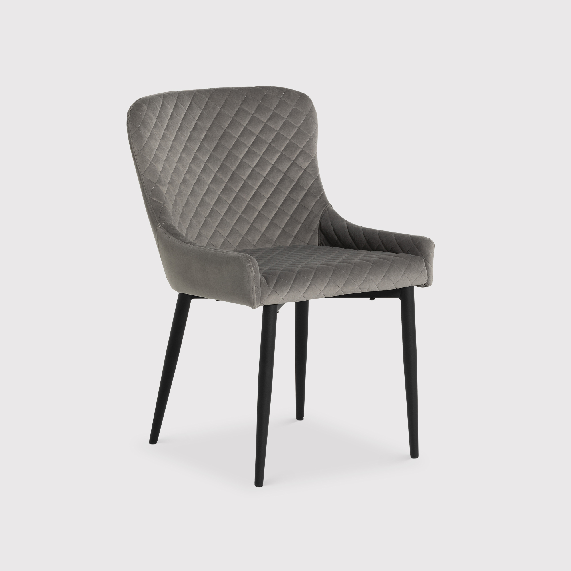 Rivington Grey Velvet Quilted Dining Chair, Grey Velvet and Black Legs