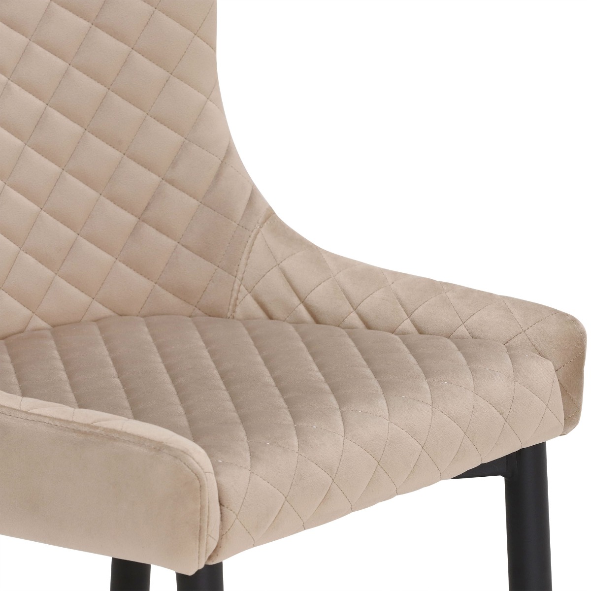 Introducing the Rivington Counter Stool, destined to become your kitchen's new favorite seating option. Draped in luxurious quilted taupe velvet, it infuses a sense of everyday elegance into your home. The stool features a gently curved backrest and fixed foam cushioning, ensuring a comfortable seating experience. Its sleek black metal legs, complete with a matte powder-coated finish, offer a modern and sophisticated touch. Crafted to perfectly complement kitchen counter heights, this stool seamlessly combines style, comfort, and practicality, making it an ideal addition to your culinary space.
