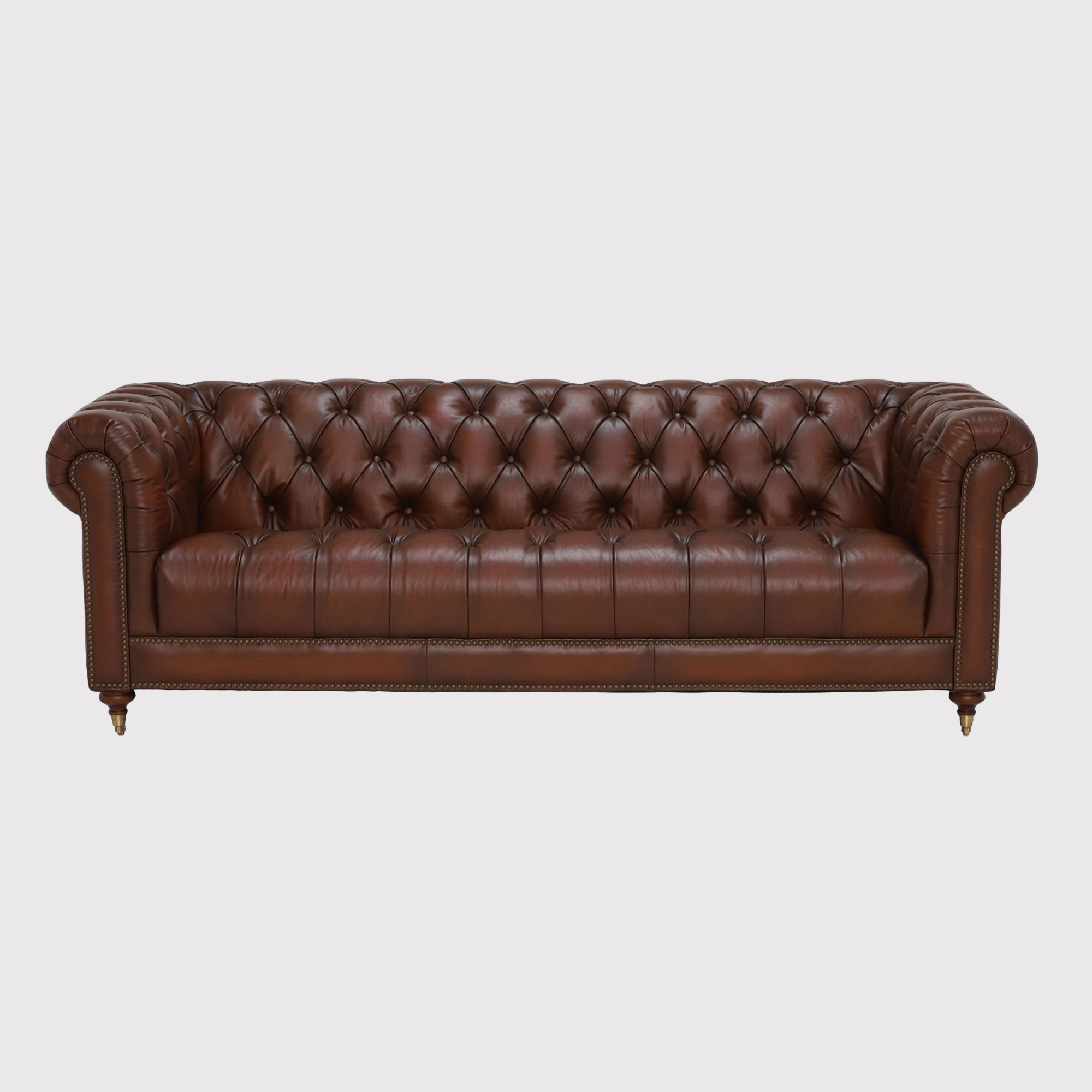 Ullswater Leather Chesterfield 4 Seater Sofa, Vintage Tabac Brown Body, Brass Studs