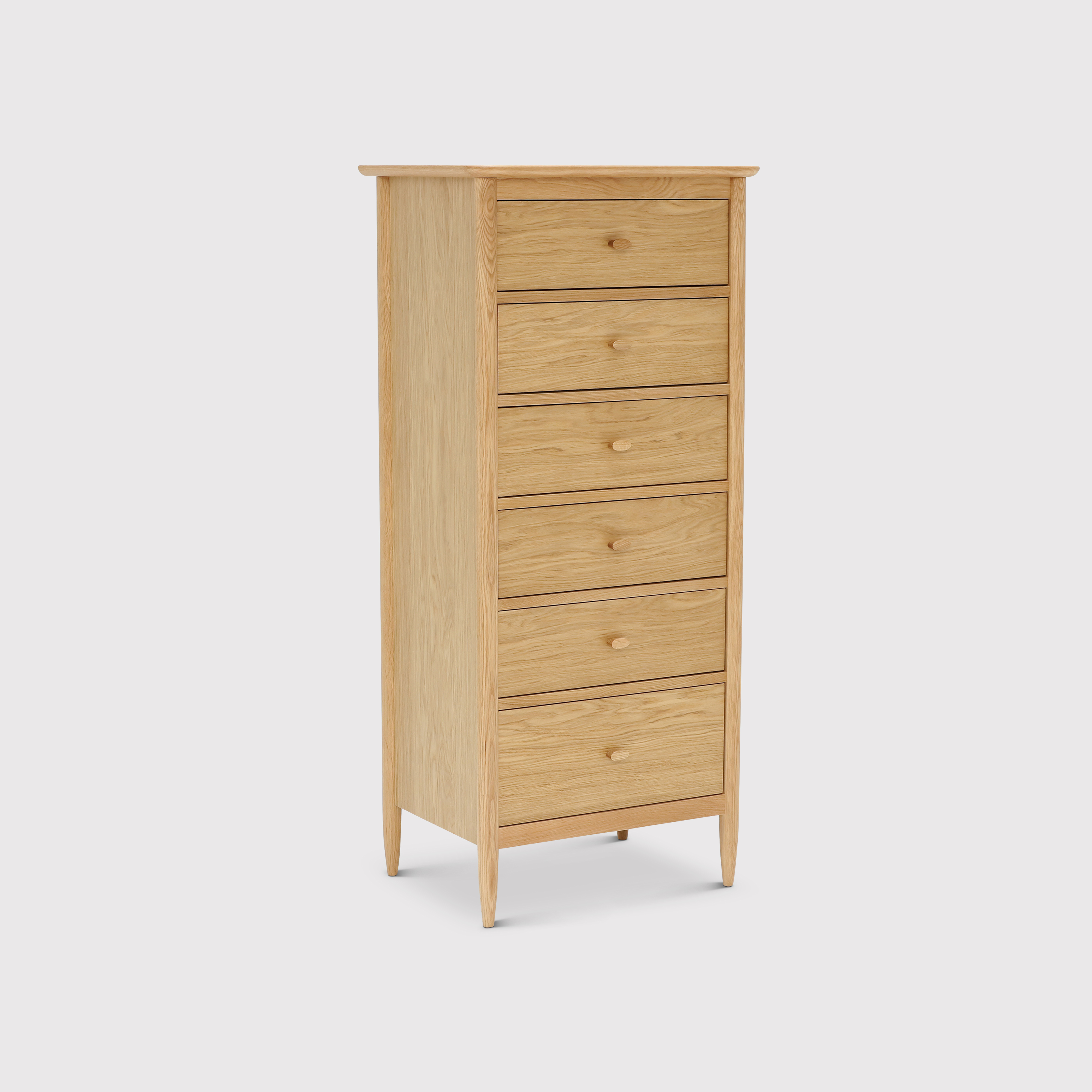 Discover the ideal storage solution for smaller bedrooms or compact spaces with this stunning tall chest of drawers. Despite its convenient 64cm width, this chest offers generous storage capacity, featuring six deep drawers designed to accommodate your clothing and essentials with ease.