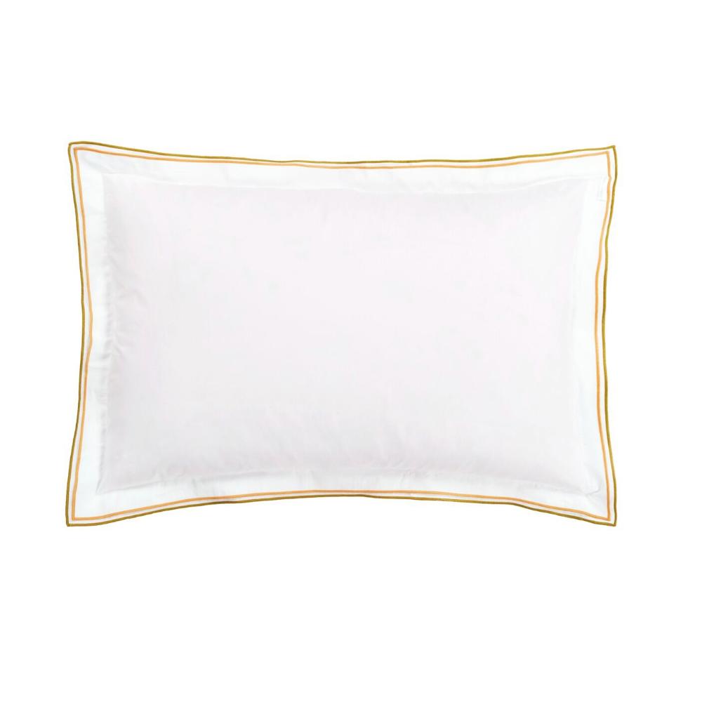 Our beautiful 400 thread count cotton percale pillowcases, a quality you would expect to find in a luxurious hotel. Crisp, plain white with a sophisticated, embroidered detailing in two complimentary shades feature on the double-edged Oxford Pillowcase.