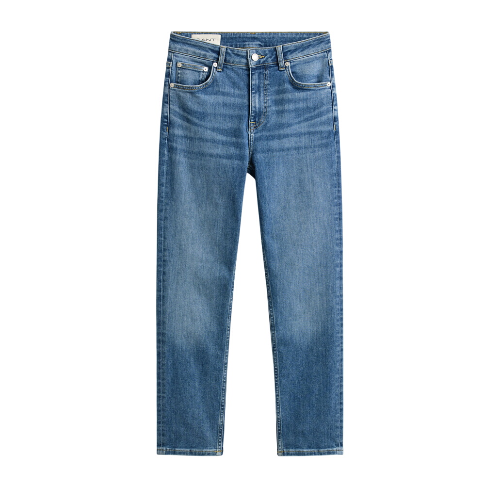 These cropped jeans from Gant are made from cotton in an indigo wash. They feature a mid-rise waist and slim fit, crafted with high-stretch fabric for comfort and shape retention. Details include branded denim buttons, a zip fly, and a leather label with the Gant logo on the back waistband. We recommend selecting the size you normally buy from Gant, or check their size guide for more information.