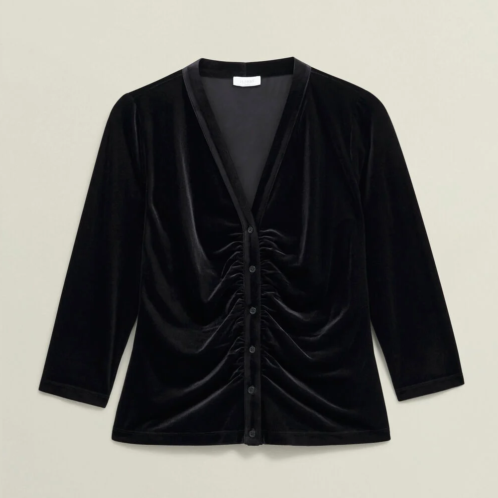 Hobbs London Hattie Velvet Ruched Button Front Top
