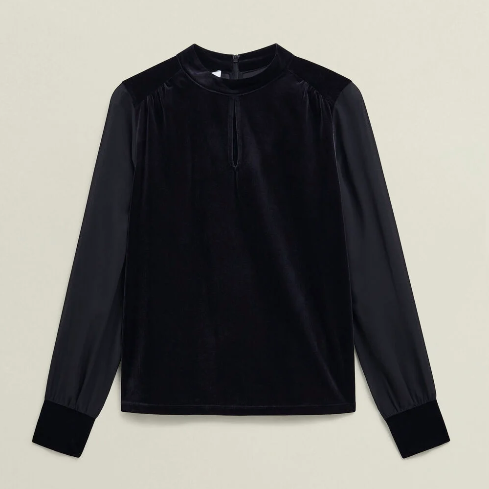 Hobbs London Lorelai Velvet High Neck Sheer Sleeve Top