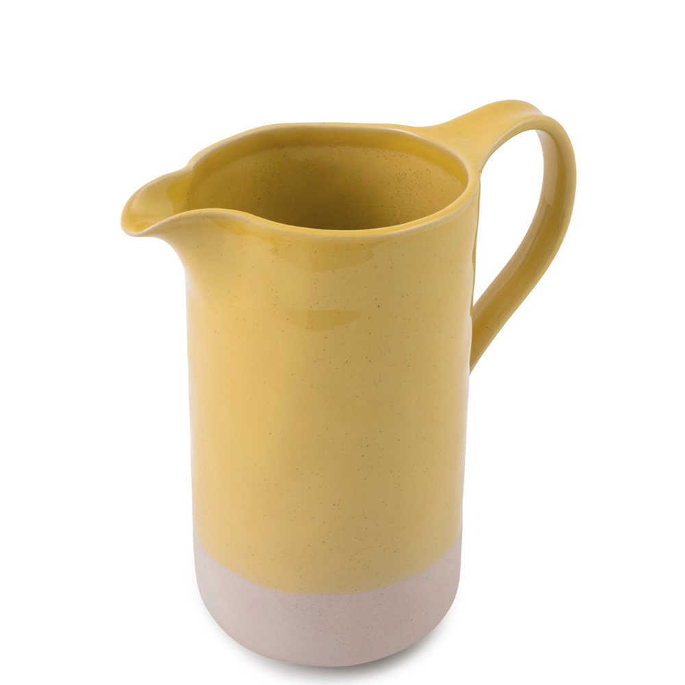 With its contrasting yellow glaze and raw speckled stoneware base, this pitcher works equally as a way to pour drinks to guests with as well as acting as a handy place to keep your flowers in!