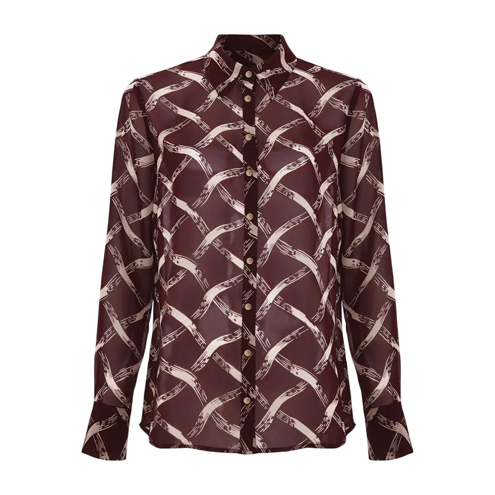 Refresh your transeasonal styling with our burgundy shirt. Updated with a contemporary check print it’s an easy desk to dinner style to pair with smart trousers. Love this print? Discover our Mairi mini skirt.