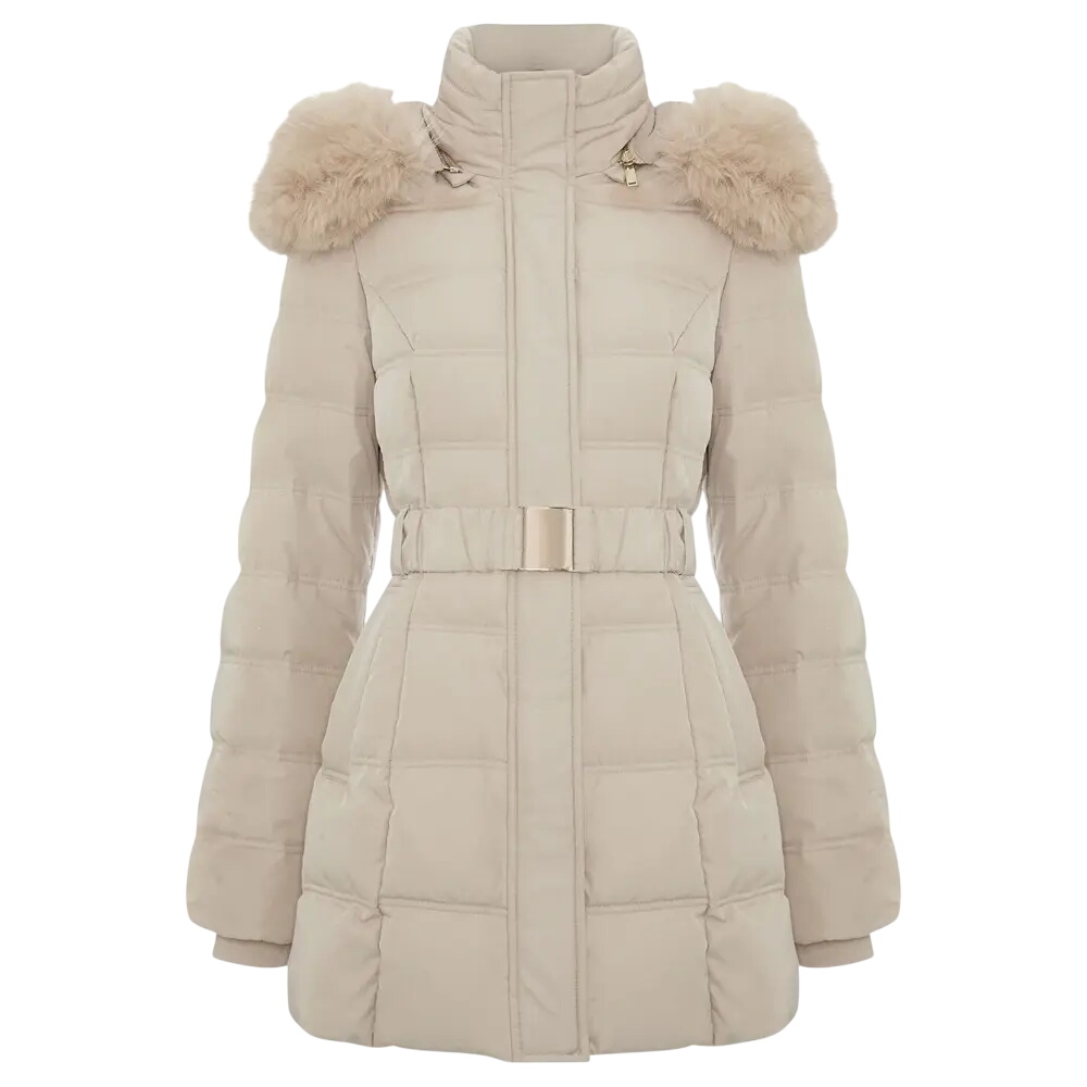 A true AW wardrobe staple, the Dixie cream puffer coat is practical, without compromising on style. With a detachable faux fur hood and ruched elastic belt for creating shape, it’s our way of elevating a classic puffer coat. Made from a showerproof material with ribbed cuffs, zip and button fastening and feather and down filling for insulation, this coat is an essential for the colder months.