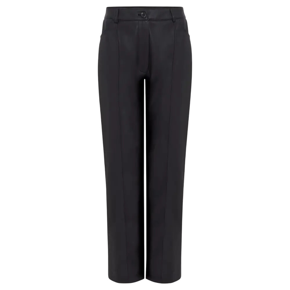 In a cropped cigarette shape, these black trousers are designed in a contemporary PU, adding an edge to your trouser collection. Perfect for styling with knitwear and boots for an elevated work look, or dialling up with a contemporary blouse and heels to take you into the evening in style.
