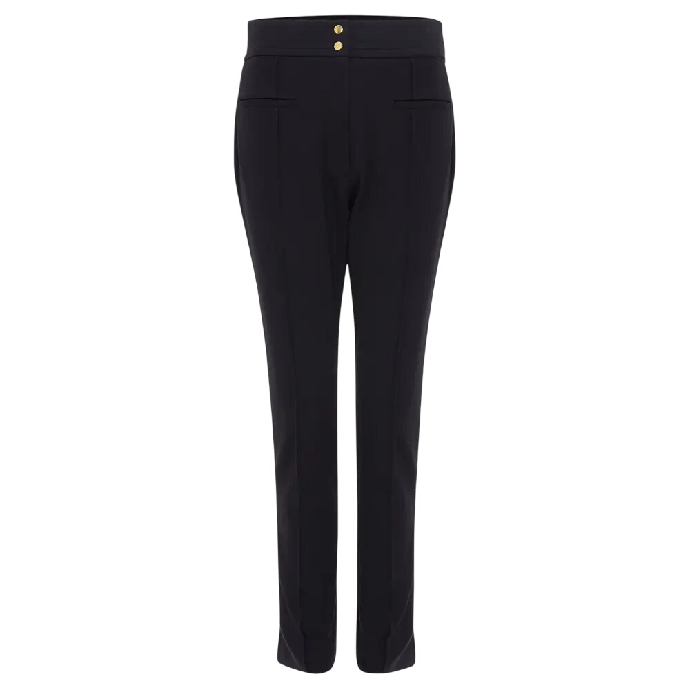 The black straight-leg trousers you’ll be reaching for again and again. Designed in a stretch fabric that is both comfortable and stylish, featuring gold popper fastening and contemporary seams for elevated detail. Wear with your favourite knits and blouses, taking you effortlessly from AM-PM.