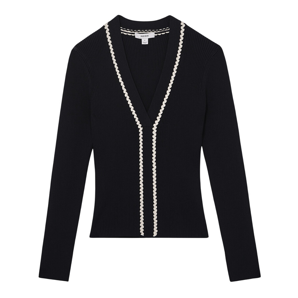 REISS Lauri Craft-Stitch Rib-Knit Top