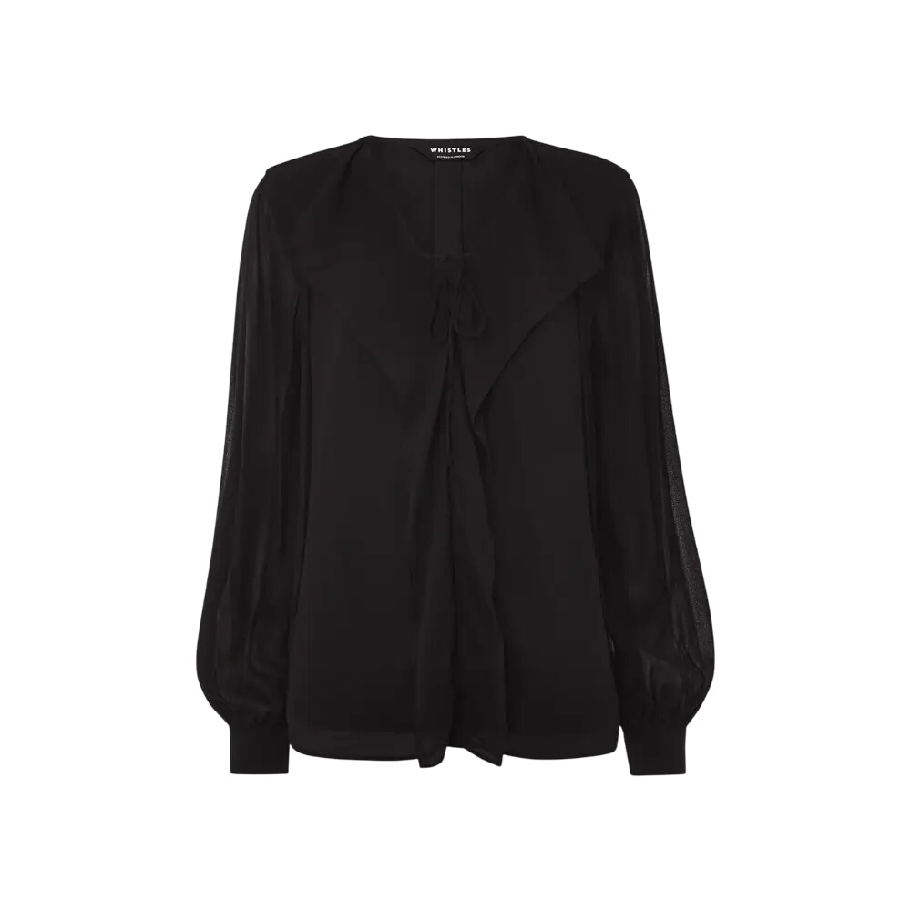 Elevate your wardrobe with the Whistles Sheer V Neck Frill Blouse, a perfect blend of sophistication and contemporary style. Designed to capture attention, this blouse features a delicate sheer fabric that adds a touch of elegance to any ensemble. The V-neckline gracefully frames the face, while the subtle frill detailing enhances the overall feminine charm.