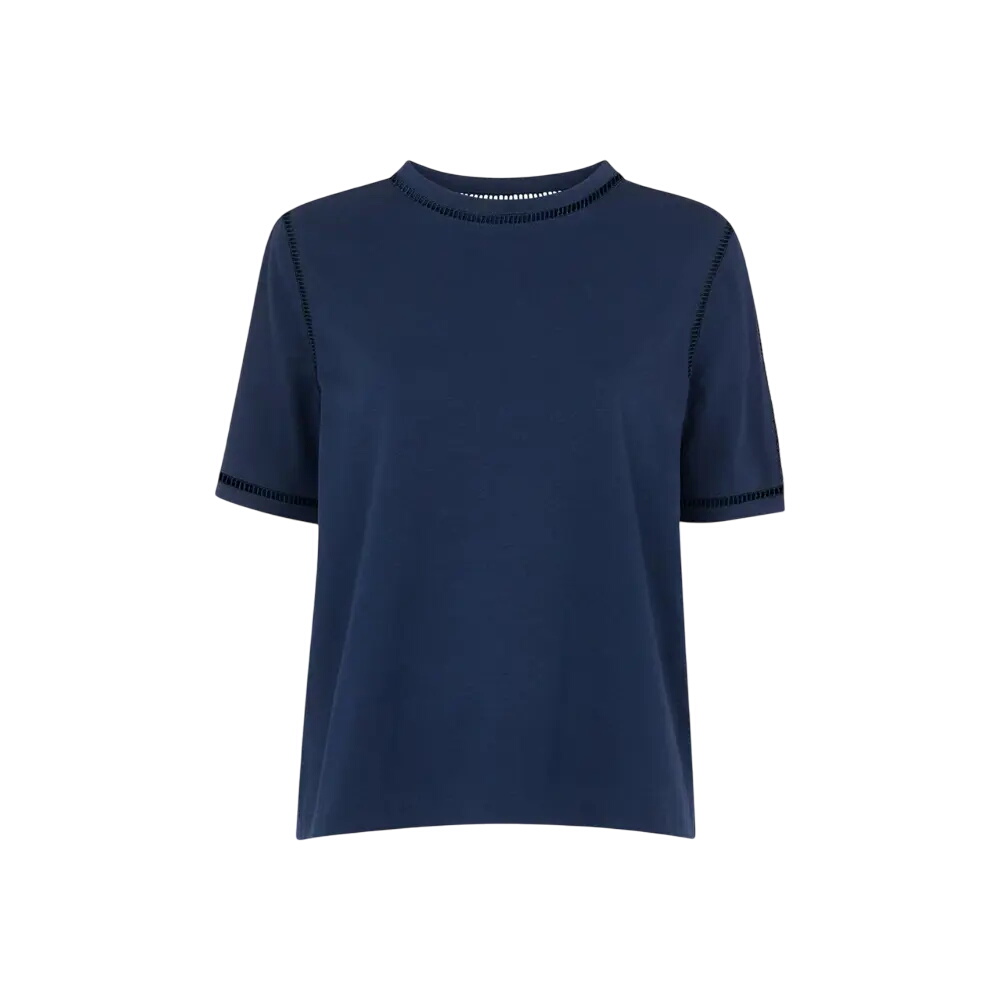 The Whistles Broderie Trim Detail Tee features a classic round neckline and short sleeves, making it a versatile staple for any season. Whether paired with tailored trousers for a chic office look or worn with your favorite denim for a refined weekend ensemble, this tee offers endless styling possibilities. The intricate broderie trim details are meticulously crafted to enhance the overall aesthetic, providing a subtle yet striking visual appeal.
