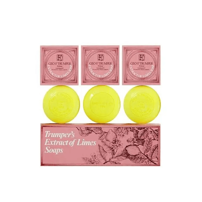 Geo F Trumper Extract of Limes Hand Soaps 3x 75g. Trumper's famous Extract of Limes, made from only the finest West Indian Limes and now combined with triple milled soap of the highest quality.