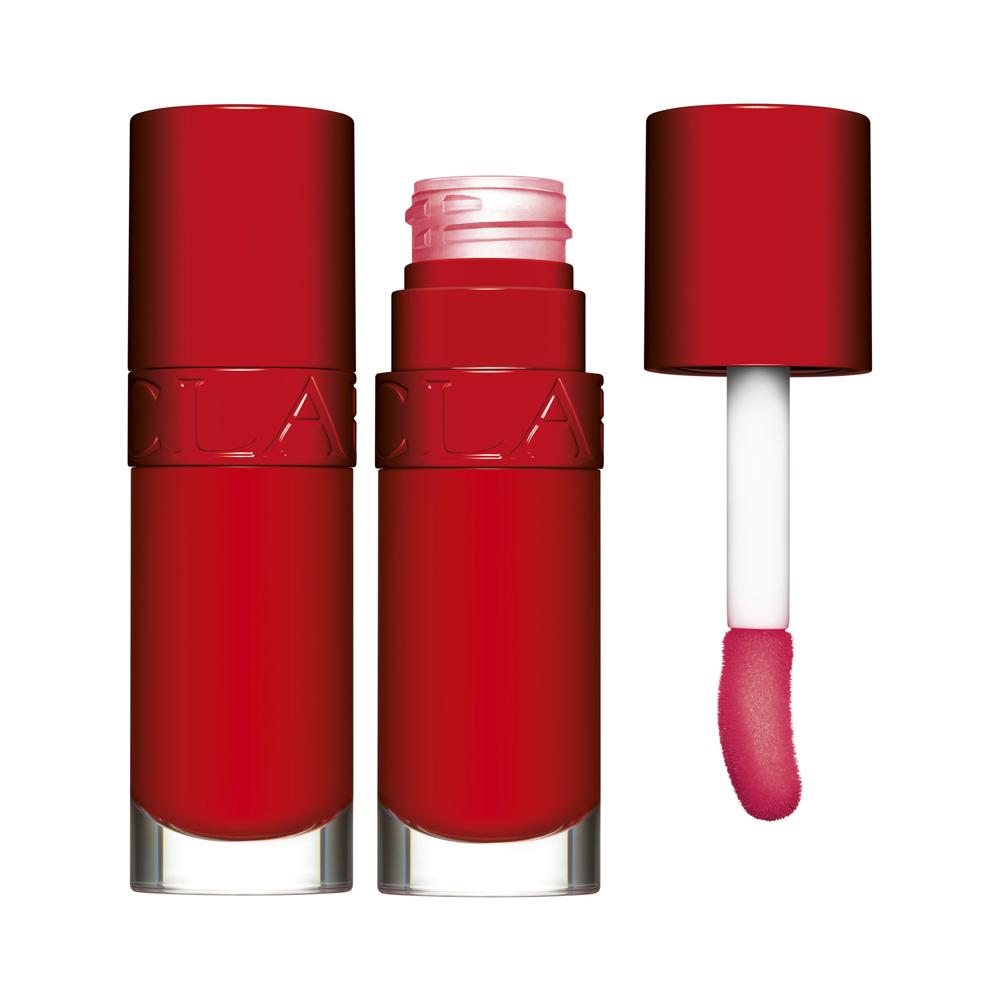 Celebrate 10 years of Clarins Lip Oils with a NEW Iconic Red Shade. Made with the same formula and ingredients that you know and love for plump and hydrated lips. 98% skin care formula including Organic Sweetbriar Rose, Jojoba and Hazelnut oils.