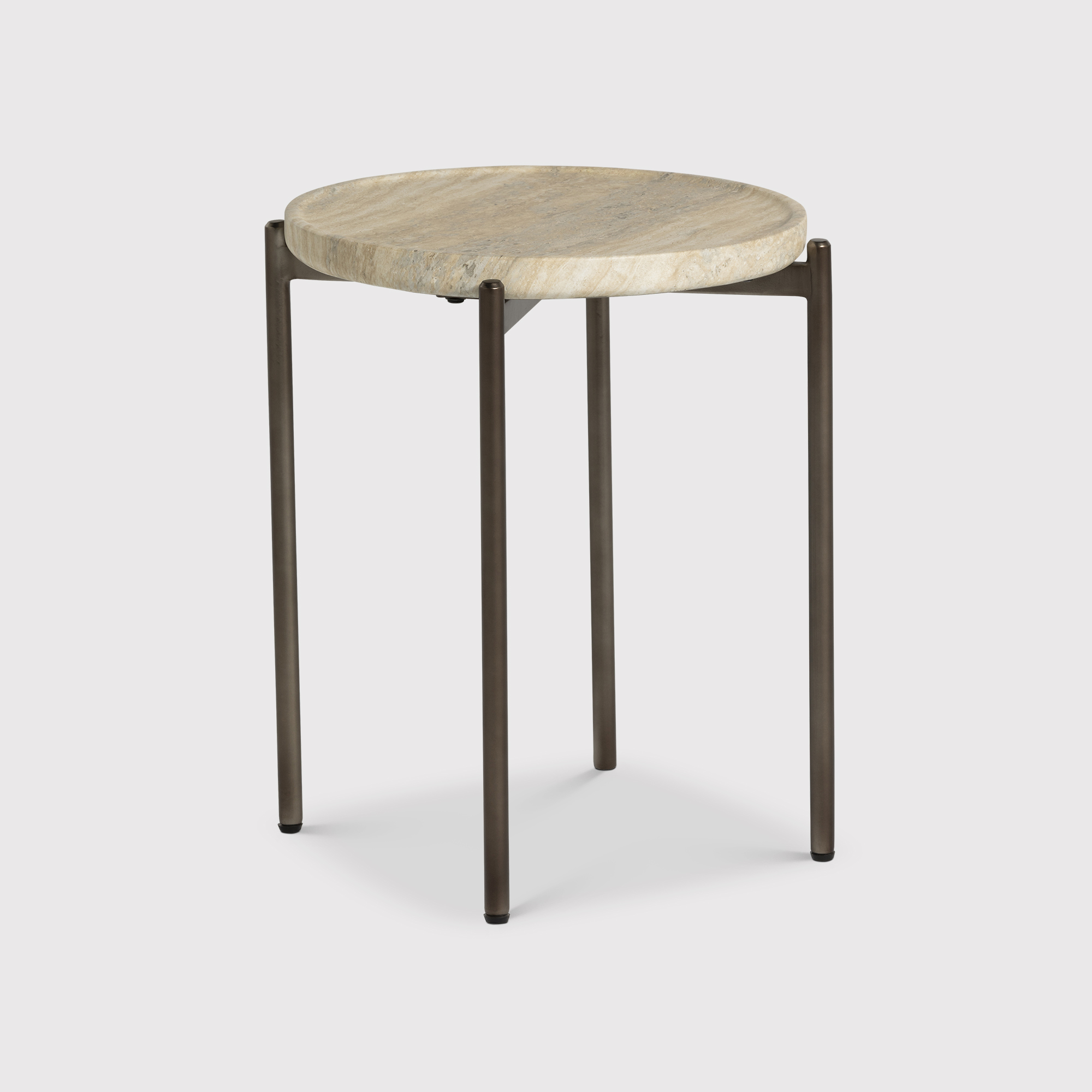 Ryde Low Dark Travertine Side Table - Faux Travertine and Chocolate Brown, Gard25