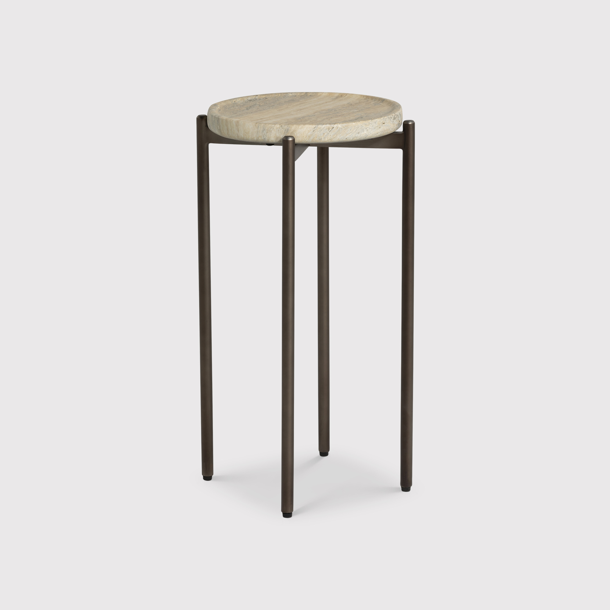 Ryde Tall Dark Travertine Side Table - Faux Travertine and Chocolate Brown, Gard25