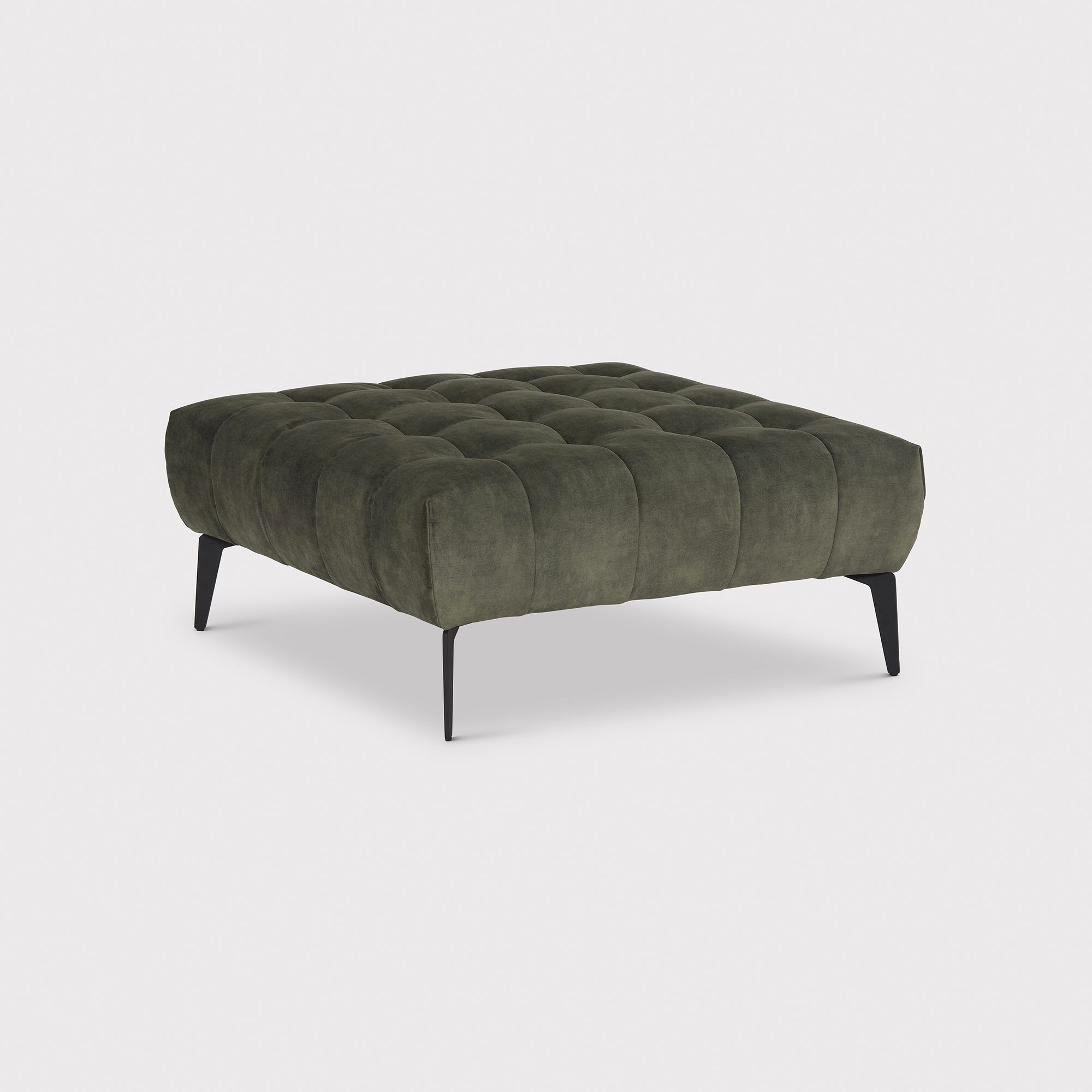 Enhance your living room's aesthetic with the exquisitely luxurious Azalea Footstool. This elegant piece not only adds a cozy feature but also infuses an extra touch of opulence, perfectly complementing the Azalea sofas to complete your desired look. Crafted with stunning plush velvet fabric, it showcases traditional button-through detailing that exudes timeless charm. Filled with foam cushioning, the footstool promises a plump, supremely comfortable experience. Its tapered iron feet offer a clean, modern finish, ensuring a sophisticated addition to any living space.