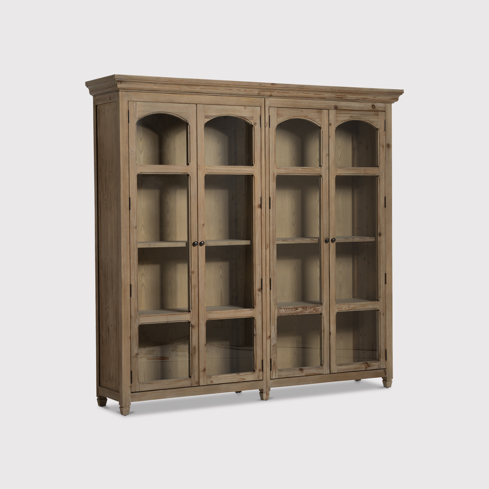 Elevate your living or dining area with this exquisite 4-door display cabinet, meticulously crafted from robust pine wood. The clear glass doors offer a classic and rustic aesthetic, allowing you to beautifully showcase your cherished decor, literary treasures, or elegant tableware. Inside, you'll find three generous shelves designed to provide ample space for all your display needs. This charming piece is as functional as it is stylish, making it an essential addition to any home interior.