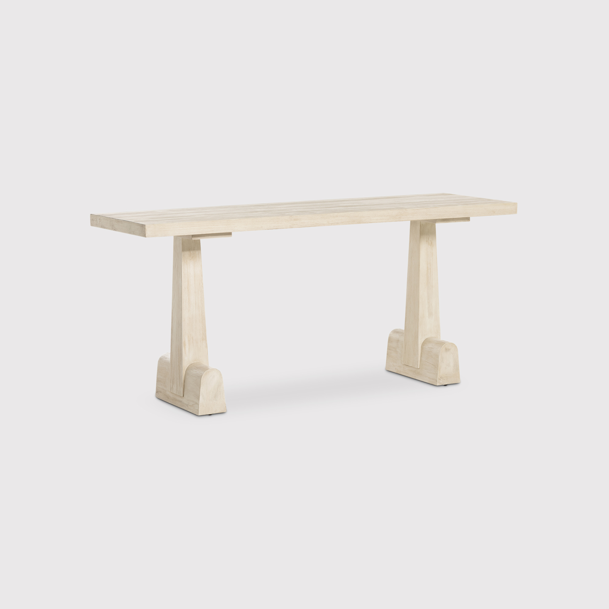 Expertly crafted from solid pine, this console table features a frosty white brushed finish that infuses any space with rustic elegance. Its sleek lines and light finish are perfect for brightening up entryways, hallways, or living areas, offering a stylish yet versatile addition to your home decor.