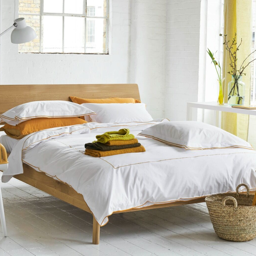 Our beautiful 400 thread count cotton percale bed linen, a quality you would expect to find in a luxurious hotel. Crisp, plain white with a sophisticated, embroidered detailing in two complimentary shades feature on the double-edged Oxford Pillowcase. The duvet cover features a co-ordinating, embroidered frame design and embroidered edging for a stylish look. This bedding brings five-star style to your bedroom. Produced in Oeko-Tex ® Made in Green factories.