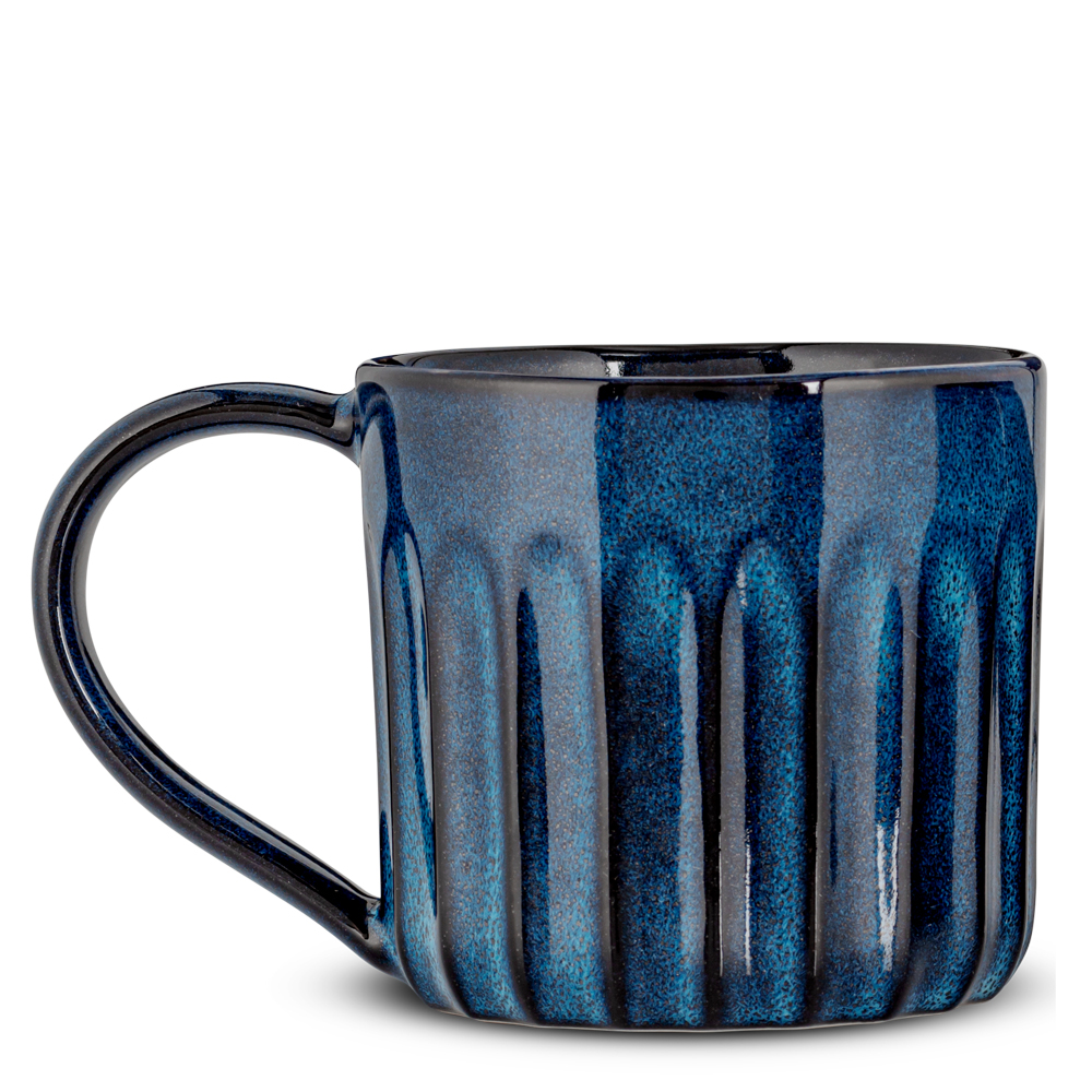 The deep blue glaze of the Moda mug makes it a perfect way to add some richer tones and depth to your drinkware collection. The unusual grooved design creates an elegant texture that allows the glazing to become a focal point. Each piece is unique thanks to variations during the firing process. This standard size mug is a beautiful everyday piece that can be styled with the other mugs in the Moda collection for a gorgeous array of striking ceramics.