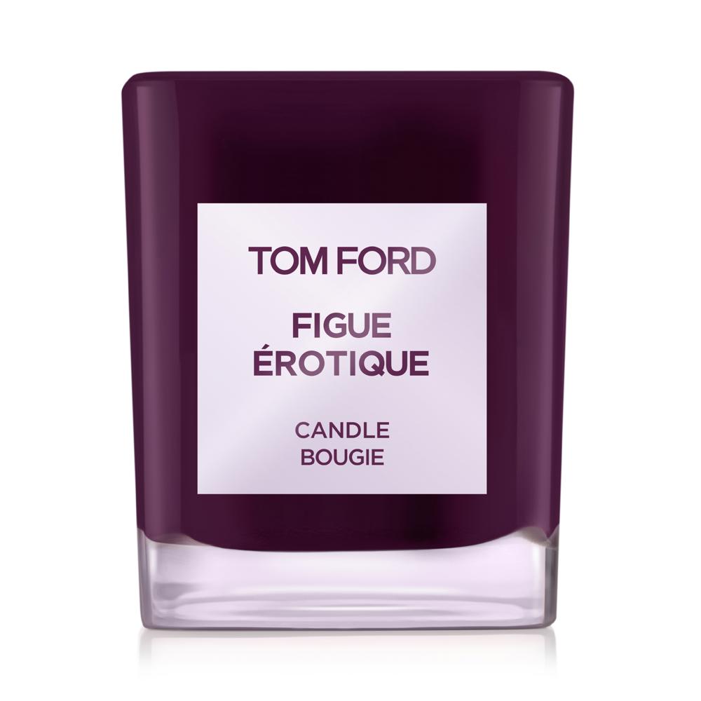TOM FORD Figue Candle immerses you into the audacious world of TOM FORD. Scent and style your home with the amber fruity fragrance that explores desire by capturing the arc of the fig. Encased in jewel-like glass and accented with a violet-coloured label, the candle is the essential statement piece to set the mood for your surroundings.