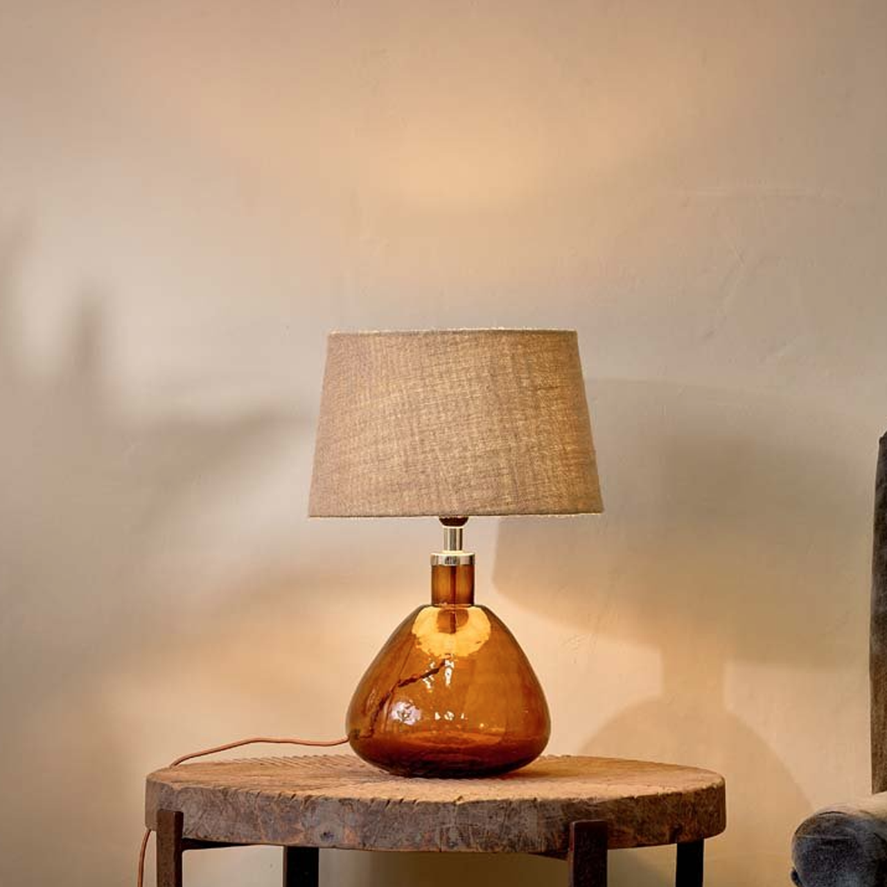 A beautiful organic styled lamp by Nkuku, presenting the Baba Glass Lamp in burnt amber. Made from recycled glass and skilfully hand blown using traditional methods in a mould to create this curvacious natural shape.