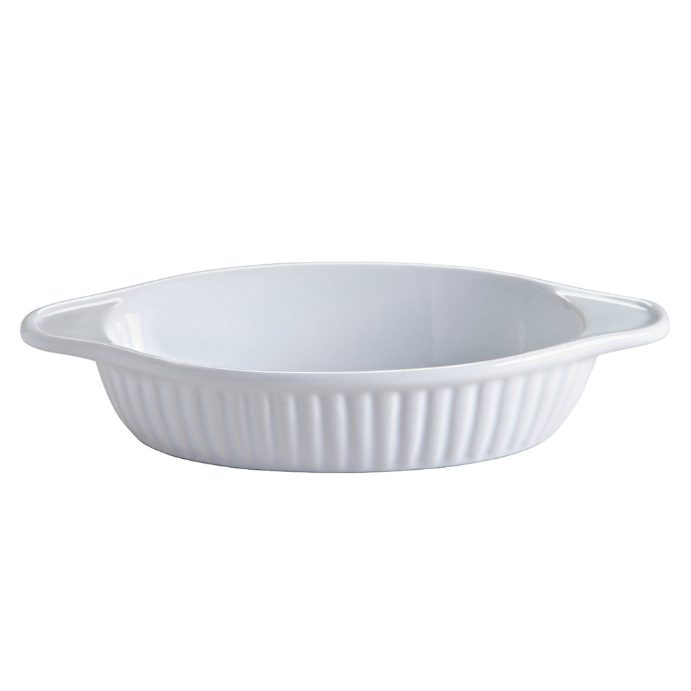 A super stoneware 21cm Oval Oven Dish from the Mason Cash Classic Collection. This highly versatile oven dish is perfect for pies, pudding and serving individual dishes from the oven to the table. Easy to clean and chip resistant, this lovely white stoneware dish with handles is also ideal for serving side dishes at the table.