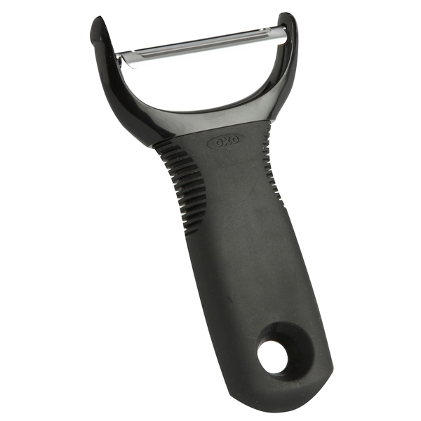 Named for its shape, the OXO GOOD GRIPS Y Peeler features a sharp stainless steel blade that glides through even the toughest fruit and vegetable skins with ease. The soft, comfortable handle cushions your hand as you peel, and is non-slip, even when your hands are wet.