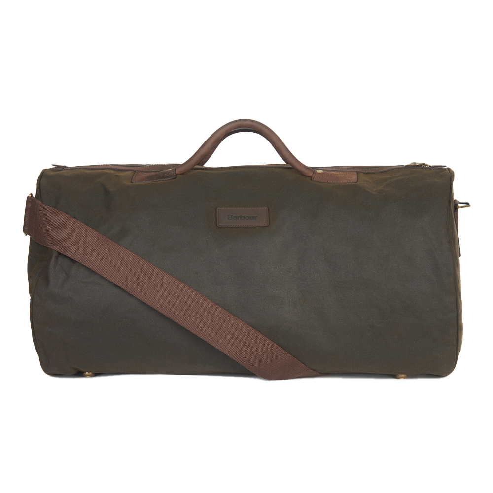 Travel in style with the Barbour wax holdall. This beautiful waxed bag combines simplicity, versatility and reliability to a tee; your items inside will not only be stored securely, but will be kept dry. Featuring inner zipped pockets, a detachable shoulder strap, Antique brass detailing, two way zip closure, opulent Barbour tartan lining and a base board with studs to provide structure and resilience; this holdall has all the necessities under one waxed holdall.